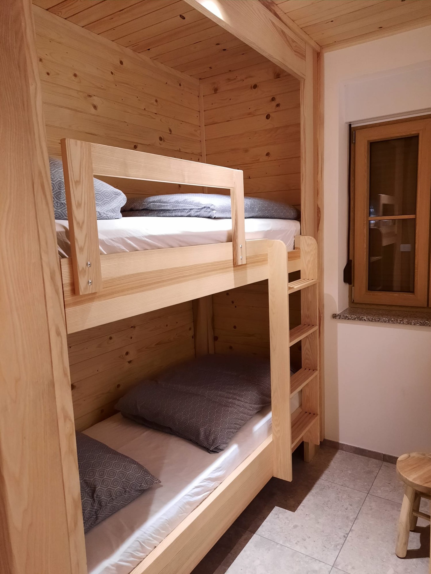 - Wohnung 1 (Erdgeschoss): die Fläche beträgt 45m². In dieser Wohnung gibt es zwei Schlafzimmer, eines mit einem Doppelbett und eines mit einem Etagenbett. Es gibt ein weiteres Schlafsofa für 2 Personen in der Wohnküche. Insgesamt können hier bis zu 6 Personen wohnen.